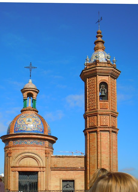 Primero por sus materiales: ladrillo (muy bien moldurado y que ofrece múltiples articulaciones para jugar con la luz meridional, siguiendo así toda una tradición que se remonta, al menos, al periodo andalusí) y cerámica, precisamente trianera, como corresponde a su lugar.